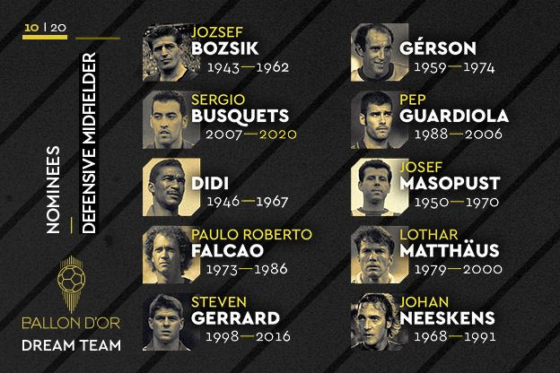 Οι υποψήφιοι του France Football για τον τίτλο του καλύτερου αμυντικού μέσου όλων των εποχών France Football