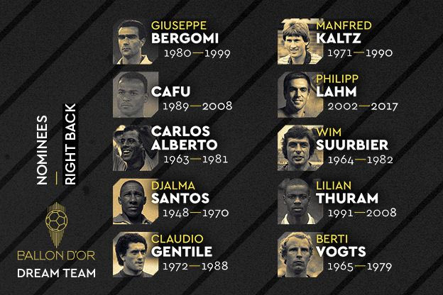 Οι υποψήφιοι του France Football για τον τίτλο του καλύτερου δεξιού μπακ όλων των εποχών France Football