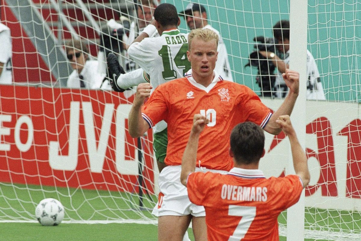 Ο Ντένις Μπέργκαμπ της Ολλανδίας πανηγυρίζει με τον Μαρκ Όφερμαρς γκολ που σημείωσε κόντρα στην Ιρλανδία για τη φάση των 16 του Παγκοσμίου Κυπέλλου 1994 στο 'Σίτρους Μπόουλ', Ορλάντο | Δευτέρα 4 Ιουλίου 1994 AP Photo/Sanitago Lyon