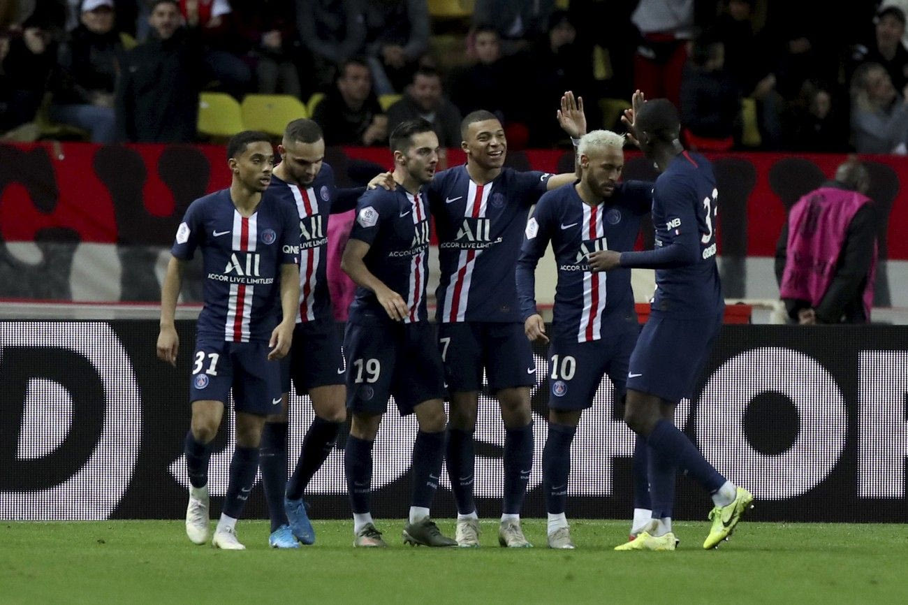 O Κιλιάν Εμπαμπέ πανηγυρίζει με τους συμπαίκτες του την επίτευξη γκολ κόντρα στην Μονακό AP Photo/Daniel Cole