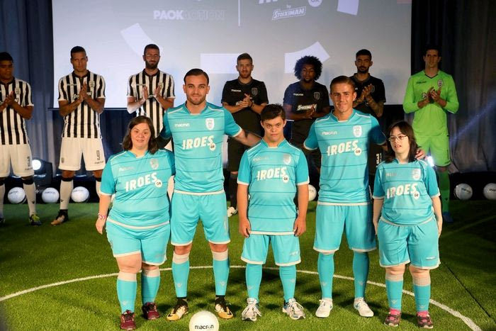 Παράλληλα, η τρίτη φανέλα θα έχει στο μπροστινό μέρος ως λογότυπο το “Μικροί Ήρωες”, τη δράση της Stoiximan.gr στο πλαίσιο της εταιρικής κοινωνικής ευθύνης της. Αξίζει να σημειωθεί πως οι Γιάννης Μυστακίδης και Δημήτρης Πέλκας που φορούσαν την τρίτη φανέλα-εκπληξη μπήκαν στο χώρο της εκδήλωσης μαζί με παιδιά που έχουν σύνδρομο down.