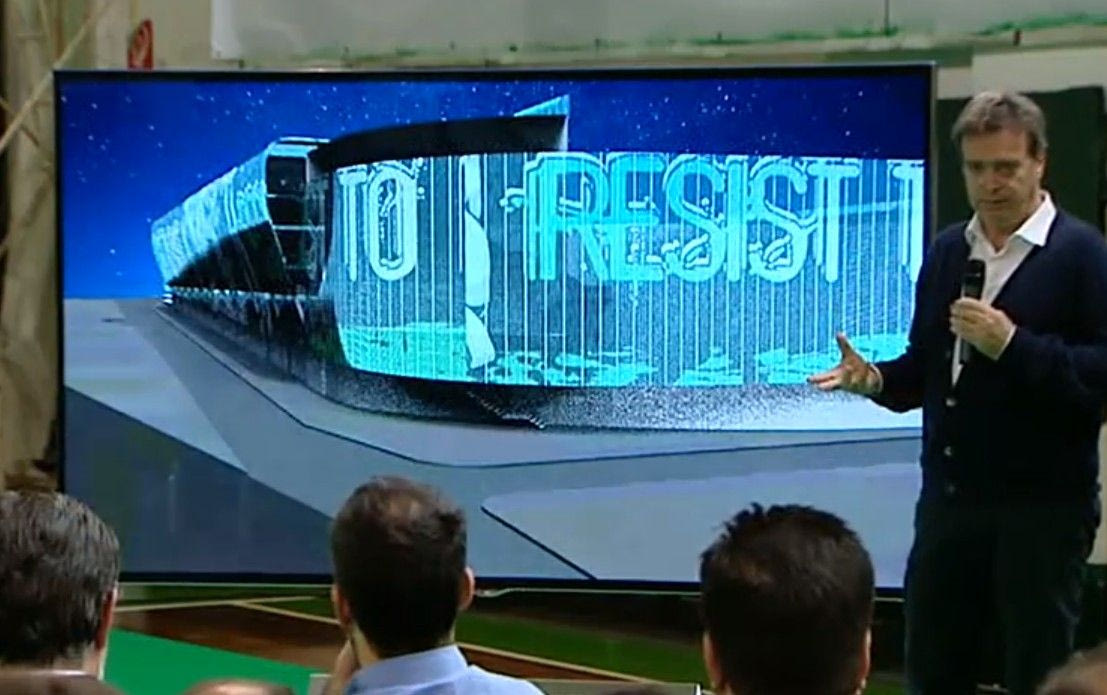 Στη συνέχεια άρχισε η παρουσίαση των σχεδίων του έργου, ενώ η αρχιτέκτονας και εκπρόσωπος του γραφείου που ανέλαβε το έργο, Μαρία Κοκκίνου, σημείωσε: “Υπάρχουν τρεις παράγοντες για το γήπεδο. Η εικόνα σε σχέση με την πόλη. Η βελτίωση και επισκευή εσωτερικά του γηπέδου και οι εμπορικές ζώνες”.