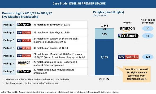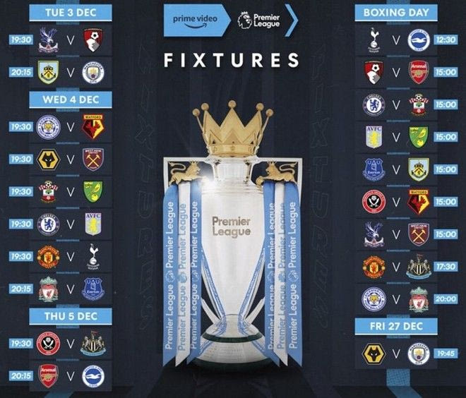 Η νίκη της Μάντσεστερ Σίτι στην έδρα της Μπέρνλι και της Κρίσταλ Πάλας κόντρα στην Μπόρνμουθ μεταδόθηκαν διαδικτυακά από την πλατφόρμα Prime Video. Η συμφωνία για την πώληση των τηλεοπτικών δικαιωμάτων του κύκλου 2019-2021 ξεπέρασε τα 5.000.000.000 ευρώ, με το Sky Sports να μεταδίδει 128 αγώνες τον χρόνο, το BT να περιορίζεται σε 52 και το Prime Video να έχει στην κατοχή του δικαιώματα για 20 αγώνες Δεκεμβρίου, κάτι που σημαίνει και τους αγώνες της Boxing Day στις 26 Δεκεμβρίου. Μέχρι στιγμής δεν έχει γίνει γνωστό το ποσό που δαπάνησε ο αμερικανικός κολοσσός γι’ αυτήν τη συμφωνία, ωστόσο το BT, επίσης για δύο μεσοβδόμαδες αγωνιστικές, θα καταβάλλει περίπου 105.000.000 ευρώ.