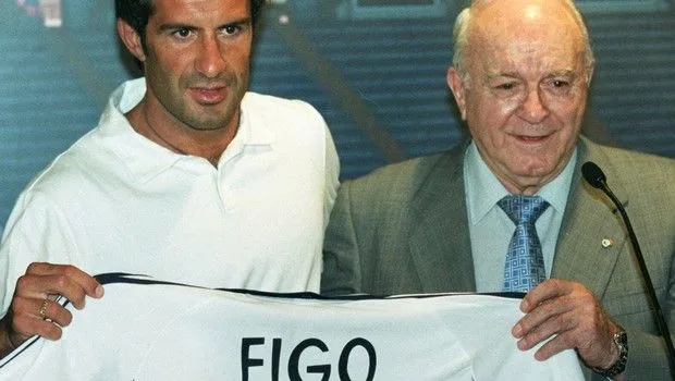 Ο επίδοξος πρόεδρος της Ρεάλ ρώτησε τα μέλη της ομάδας ποιον παίκτη της Μπαρτσελόνα θα ήθελαν στην ομάδα τους, αν κέρδιζε τις εκλογές, σύμφωνα με το βιβλίο ‘White Angels’ του Τζον Κάρλιν. Η απάντηση ήταν ο Φίγκο και τότε ο Πέρεθ συναντήθηκε με τον ατζέντη του μέσου των ‘μπλαουγκράνα’, Ζοζέ Βέιγκα, εν τη απουσία του ποδοσφαιριστή, ο οποίος βρισκόταν για διακοπές, μετά από τον αποκλεισμό της Πορτογαλίας στα ημιτελικά του Euro 2008.