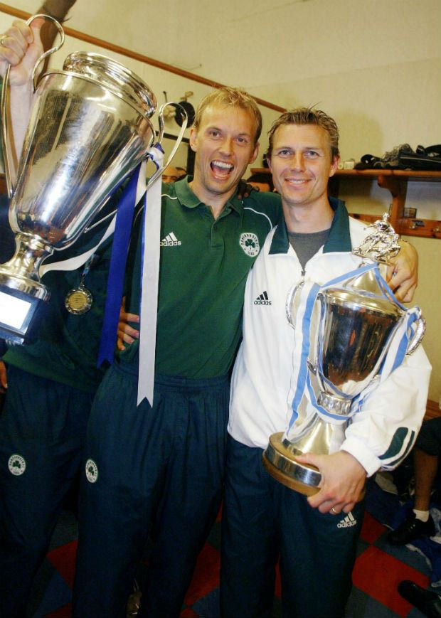 Ο πολύ καλός του φίλος και συμπαίκτης του επί τρία χρόνια στον Παναθηναϊκό, Γιαν Μικάελσεν, “ανέβασε” στον προσωπικό του λογαριασμό στο facebook μια φωτογραφία που πανηγυρίζουν την κατάκτηση του νταμπλ της σεζόν 2004 με το “τριφύλλι” στο στήθος.