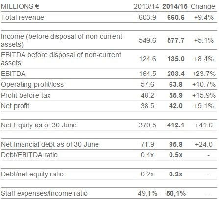 Ο ισολογισμός της χρονιάς που παρουσιάστηκε την Τετάρτη εμφάνισε έσοδα 660.600.000 ευρώ, αυξημένα κατά 9,4% από πέρυσι. Τα κέρδη προ τόκων και φόρων ανήλθαν σε 203.400.000 ευρώ (+23,7%), ενώ τα καθαρά κέρδη έφτασαν τα 42.000.000 ευρώ από 38.500.000 ευρώ του 2014, στηριζόμενα κυρίως στην πώληση του Άνχελ ντι Μαρία στη Μάντσεστερ Γιουνάιτεντ έναντι 75.000.000 ευρώ.
