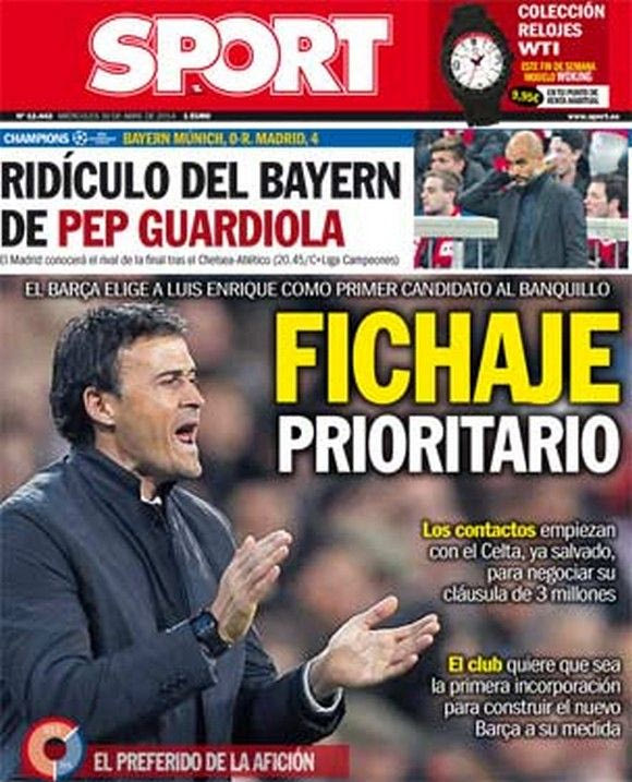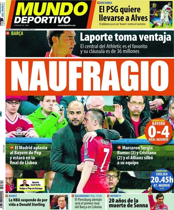 Σαφείς αιχμές κατά του Πεπ Γκουαρδιόλα και από την έτερη καταλανική εφημερίδα “Sport”, η οποία γράφει στο πρωτοσέλιδό τους πως η Μπάγερν του Πεπ Γκουαρδιόλα… “Γελοιοποιήθηκε”.