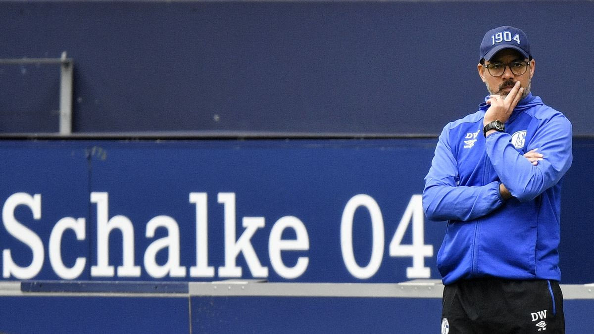 Ο Ντέιβιντ Βάγκνερ, προπονητής της Σάλκε, εμφανώς απογοητευμένος από την εικόνα της ομάδας του στο εντός έδρας 0-3 από την Άουγκσμπουργκ για την 27η αγωνιστική της Bundesliga. (24/05/2020) AP Photo/Martin Meissner