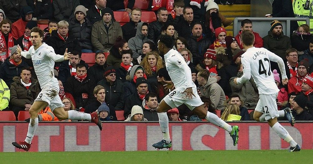 Η Σουόνσι πανηγύρισε την πρώτη νίκη της στην Premier League απέναντι στην Λίβερπουλ, επικρατώντας με 3-2 μέσα στο "Anfield" και εκτροχίασε την ομάδα του Γιούργκεν Κλοπ από τη μάχη του τίτλου (VIDEO).
