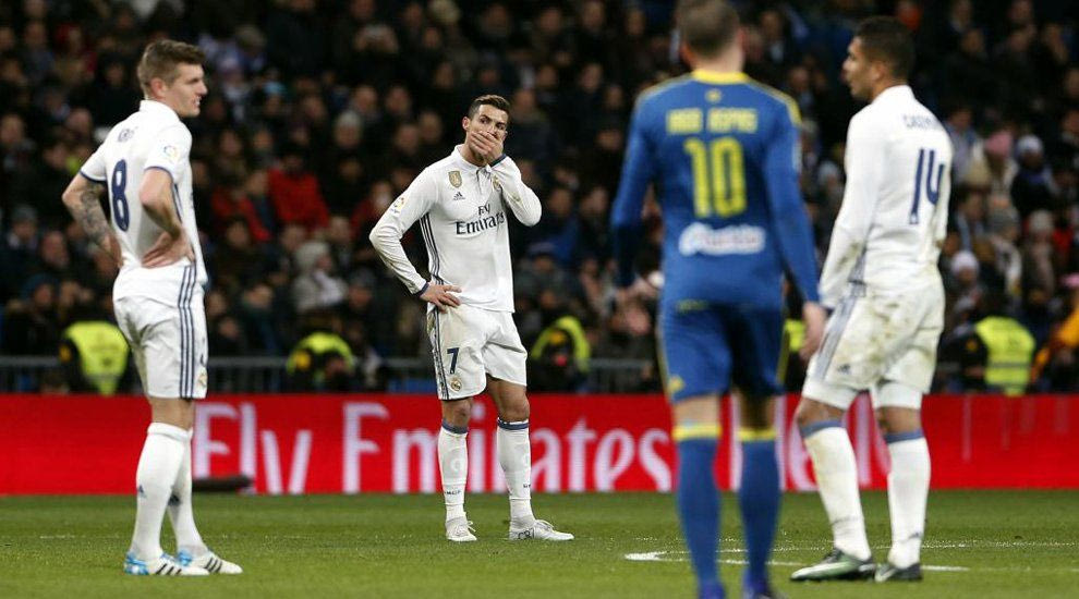 Το βράδυ της Κυριακής η Σεβίλλη ανέτρεψε το εις βάρος της 1-0 από το εύστοχο πέναλτι του Κριστιάνο Ρονάλντο και την έριξε στο καναβάτσο με “τρελή” ανατροπή (85′ αυτογκόλ από Σέρχιο Ράμος και νικητήριο γκολ από Γιόβεβιτς στο 92′) για την 18η αγωνιστική της Primera Division ενώ την Τετάρτη η ομάδα του Ζινεντίν Ζιντάν δέχτηκε νέο χαστούκι, αυτή τη φορά στο Copa del Rey από την Θέλτα και μάλιστα μέσα στο “Σαντιάγο Μπερναμπέου”.