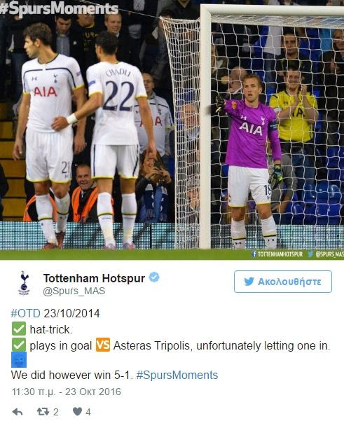 Στον επίσημο λογαριασμό της Τότεναμ στο twitter θυμήθηκαν το γεγονός και… τρόλαραν με τον τρόπο τους τον διεθνή επιθετικό.