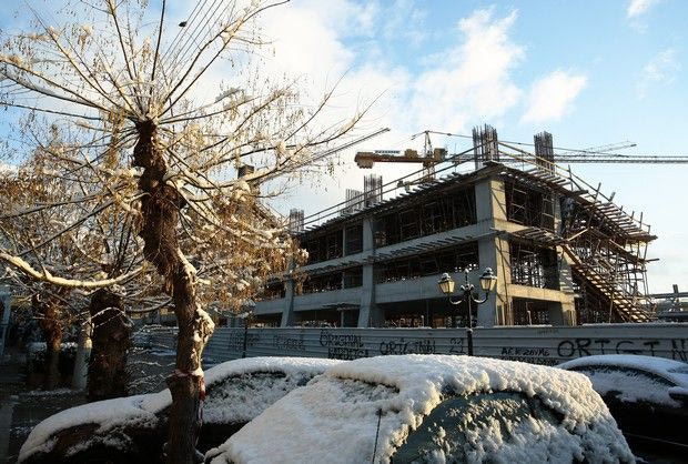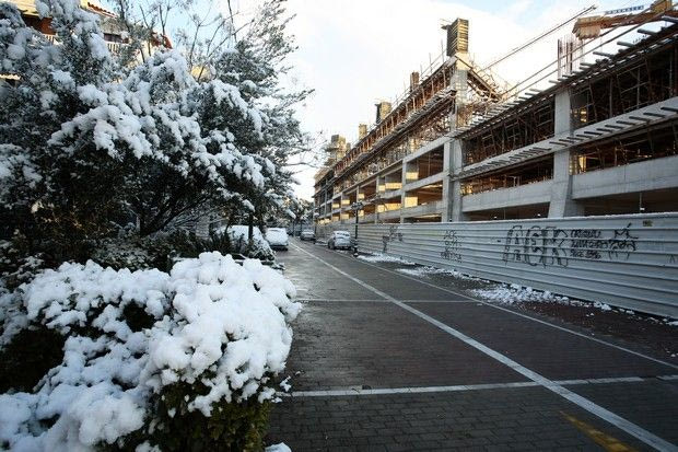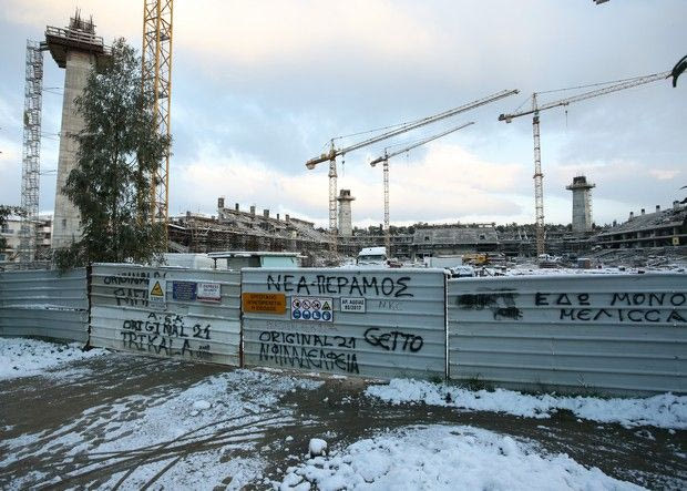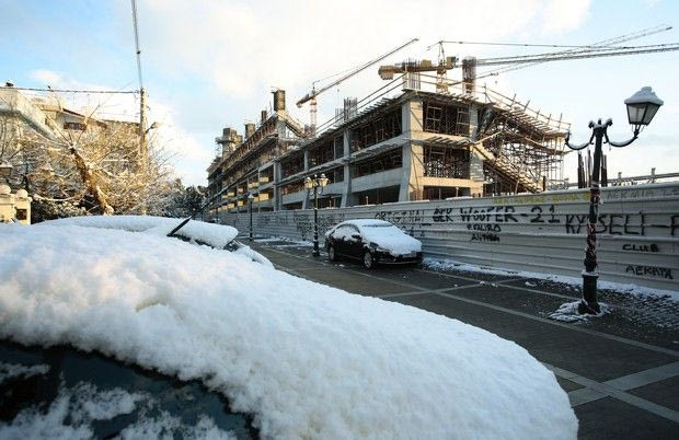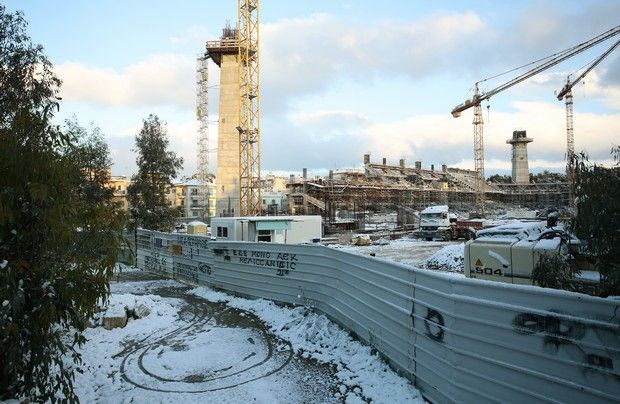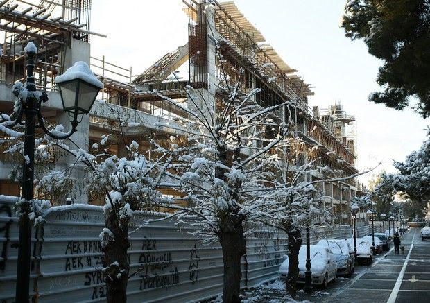 Το χιόνι που έπεσε σε όλη την Αττική το βράδυ της Δευτέρας ετοίμασε ένα άσπρο τοπίο το πρωί της Τρίτης σε όλη την επικράτεια. Η Νέα Φιλαδέλφεια δεν ξέφυγε από τον κανόνα, ούτε και το νέο γήπεδο της ΑΕΚ που χτίζεται εδώ και μερικούς μήνες.