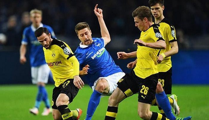 Η Ντότμουντ είναι η δεύτερη φιναλίστ του DFB Pokal, μετά την Μπάγερν Μονάχου. Οι Βεστφαλοί επικράτησαν με 3-0 της Χέρτα στο Ολυμπιακό Στάδιο του Βερολίνου και πήραν την πρόκριση για τον μεγάλο τελικό. Η ομάδα του Τόμας Τούχελ είχε τον έλεγχο του αγώνα από τα πρώτα λεπτά, πίεσε για το γκολ και είδε την προσπάθειά της να αποδίδει καρπούς στο 20ό λεπτό. Ο Μάρκο Ρόις δεν κατάφερε να πλασάρει από το ύψος του πέναλτι, η μπάλα στρώθηκε στον Γκονσάλο Κάστο, κι αυτός με ένα υπέροχο φαλτσαριστό σουτ δεν άφησε κανένα περιθώριο αντίδρασης στον Ρούνε Γιάρσταϊν.