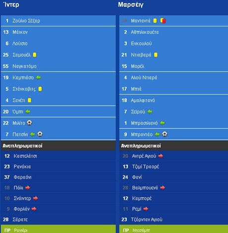 Κίτρινες: 24′ Σανέτι, 53′ Σάμουελ, 90′ Στάνκοβιτς – 67′ Ντιαβαρά, 68′ Μανταντά, 72′ Βαλμπιενά