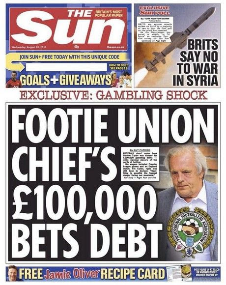 Την ίδια ώρα που η σχετική οδηγία καλεί τους επαγγελματίες ποδοσφαιριστές ν’ απέχουν από τέτοιου είδους δραστηριότητες, ο επικεφαλής του συνδικαλιστικού οργάνου τους φέρεται να έχει ποντάρει ποσά της τάξεως των 4 εκατ. λιρών σε 2.000 διαφορετικά στοιχήματα μέσα σε διάστημα τριάντα μηνών.