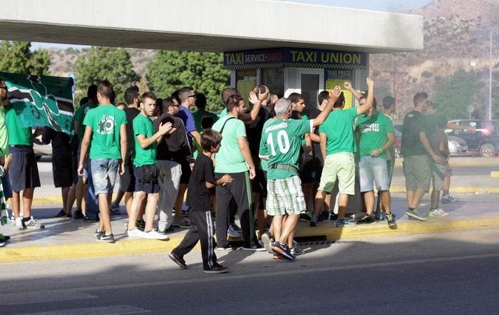 Οι “πράσινοι” έφτασαν στις πέντε το απόγευμα στο “Ιωάννης Δασκαλογιάννης” όπου ο κόσμος υποδέχθηκε τον Αναστασίου και τους ποδοσφαιριστές του. Οι φίλοι της ομάδας αποθέωσαν την αποστολή, ζήτησαν τη νίκη στο ματς με τον Πλατανιά ενώ παράλληλα προσπάθησαν να “ντοπάρουν” ψυχολογικά τους παίκτες.