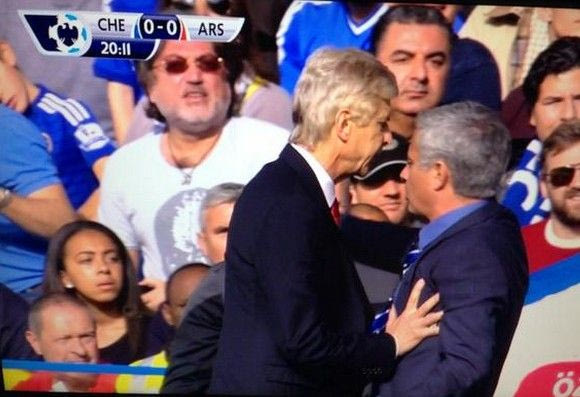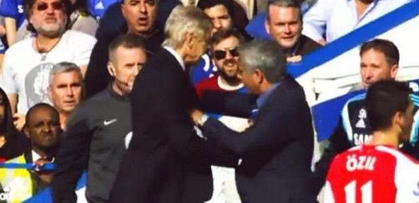 Στα χέρια ήρθαν οι Ζοζέ Μουρίνιο και Αρσέν Βενγκέρ στο 21ο λεπτό του ντέρμπι του "Στάμφορντ Μπριτζ" μεταξύ της Τσέλσι και της Άρσεναλ. Δείτε τον Γάλλο να σπρώχνει δύο φορές τον Πορτογάλο και τον Μουρίνιο να απαντάει με ένα "f*ck off".