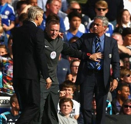 Ένα σκληρό τάκλινγκ του Κέιχιλ στον Αλέξις Σάντσες πυροδότησε ένταση ανάμεσα σε Βενγκέρ και Μουρίνιο. Η φάση έγινε στην πλαϊνή γραμμή, μπροστά στους δύο πάγκους. Ο Βενγκέρ έγινε έξαλλος, ο Μουρίνιο κινήθηκε προς τον 4ο διαιτητή και ο Αλσατός τον έσπρωξε δύο φορές, με τον Πορτογάλο να μην αντιδρά.