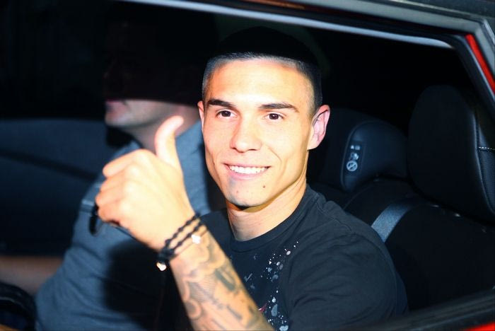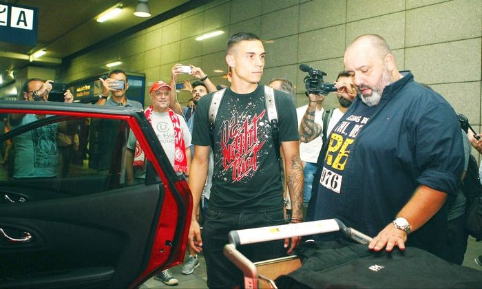 Τον 23χρονο φορ υποδέχθηκε ο Διευθυντής Επικοινωνίας της ΠΑΕ Ολυμπιακός, Κωνσταντίνος Καραπαπάς, ο οποίος τον συνόδευσε μέχρι το αυτοκίνητο της ομάδας που τον περίμενε.