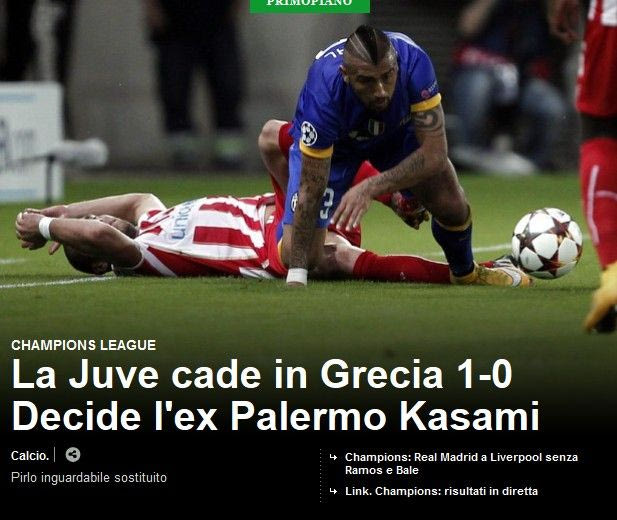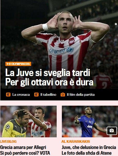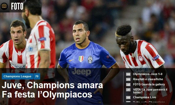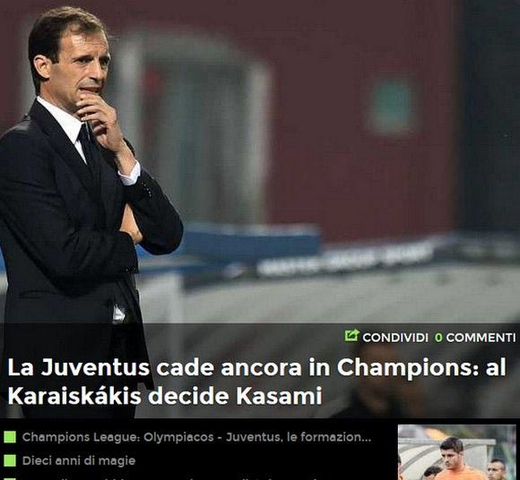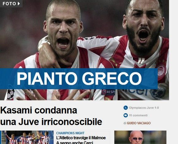 Διαβάστε τους τίτλους των ιταλικών ιστοσελίδων για την ήττα της Γιουβέντους από τον Ολυμπιακό στο "Γ. Καραϊσκάκης".