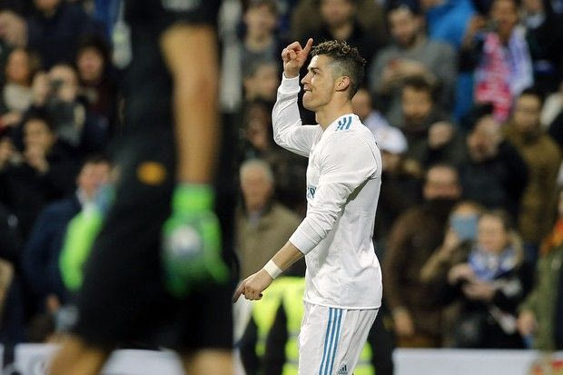 Real Madrid's Cristiano Ronaldo celebrates after scoring during a Spanish La Liga soccer match between Real Madrid and Girona at the Santiago Bernabeu stadium in Madrid, Spain, Sunday, March 18, 2018. (AP Photo/Paul White) AP Photo/Paul White