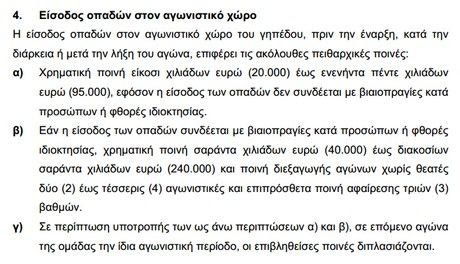 Επίσης η Ένωση ενδέχεται να κληθεί ν’ απολογηθεί σύμφωνα με τον Πειθαρχικό Κώδικα. Σύμφωνα με το άρθρο 15 παράγραφο 4 προβλέπεται πως: