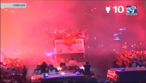 Παίκτες και οπαδοί της Ρεάλ Μαδρίτης γιόρτασαν με την ψυχή του την κατάκτηση του πολυπόθητου “decima”. Αμέσως μετά τη λήξη του τελικού, στην πλατεία της Κυβέλης (όπου πανηγυρίζουν τις επιτυχίες τους οι Μαδριλένοι) γινόταν το αδιαχώρητο, με πλήθος κόσμου να έχει βγει στους δρόμους τραγουδώντας.