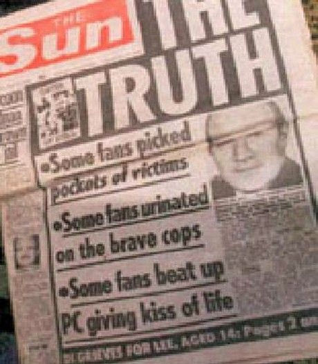 Ο ρόλος της αγγλικής σκανδαλοθηρικής εφημερίδας “Sun” επανήλθε στο προσκήνιο μία τέτοια ημέρα. Ως γνωστόν, τρεις ημέρες μετά την τραγωδία, η εφημερίδα κυκλοφόρησε υπό τον τίτλο “Η Αλήθεια”. Στο πρωτοσέλιδο και στις εσωτερικές σελίδες, ο αρχισυντάκτης Κέλβιν Μακένζι, είχε επιλέξει να καταγράψει τις πληροφορίες που έλαβε από τον βουλευτή των Συντηρητικών, Ιρβάιν Πάτνικ, και από ειδησεογραφικό πρακτορείο του Σέφιλντ, οι οποίες αποδείχθηκε πως προέρχονταν από την αστυνομία.