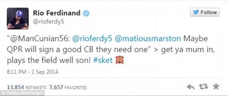 Πριν από ένα μήνα, ένας χρήστης του twitter εκτίμησε πως η ΚΠΡ πρέπει να αποκτήσει έναν αξιόλογο κεντρικό αμυντικό, κάνοντας mention στον 36χρονο Φέρντιναντ. Εκείνος απάντησε στο σχόλιο του χρήστη γράφοντας: “Βάλε τη μαμά σου μέσα, παίζει καλά στο γήπεδο γιε μου”, χρησιμοποιώντας στο τέλος το hashtag #sket.