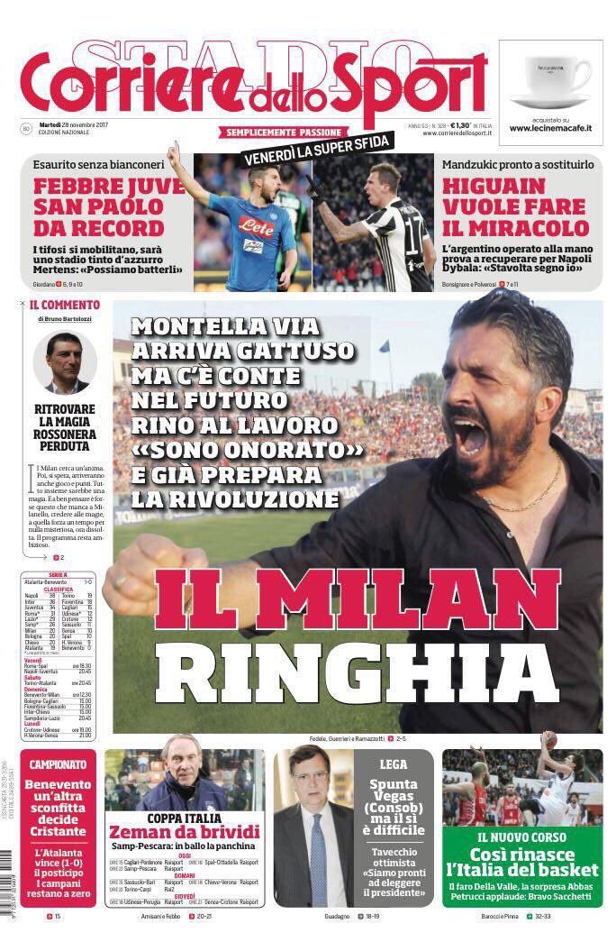 Στις 3 Δεκεμβρίου η Μίλαν παίζει στην έδρα της Μπενεβέντο, της χειρότερης ομάδας όχι μόνο στην Ιταλία αλλά σε όλη την Ευρώπη καθώς είναι η μοναδική που μετράει μόνο ήττες σε εθνικά πρωταθλήματα, με το μαύρο ρεκόρ της να έχει φτάσει στις 14 διαδοχικές αποτυχίες από το ξεκίνημα της σεζόν μετά το 0-1 στην έδρα της Αταλάντα τη Δευτέρα.