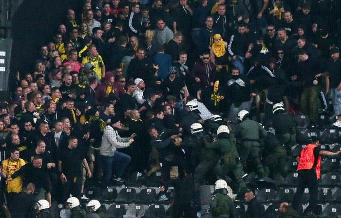 Λίγες ημέρες μετά από τα επεισόδια που προκάλεσαν οι οπαδοί της Μπάγερν πριν από το ματς του “Γ. Καραϊσκάκης” με τον Ολυμπιακό, εκείνοι της Ντόρτμουντ έπραξαν αναλόγως στις εξέδρες του γηπέδου της Τούμπας.
