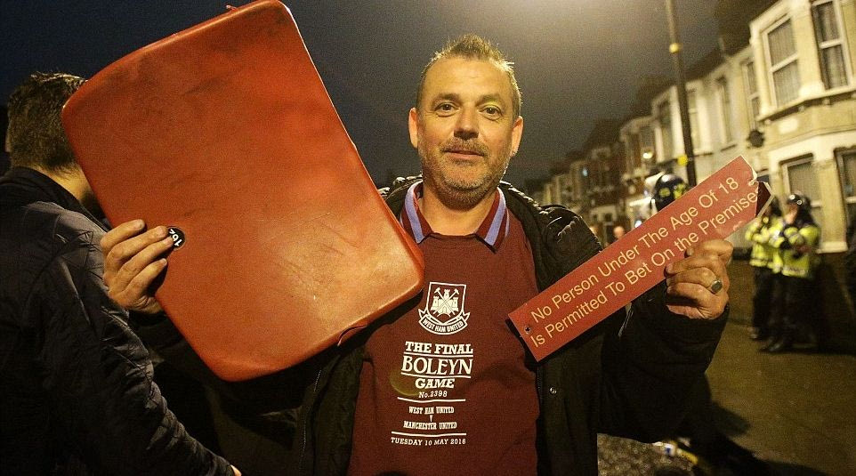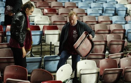 Πανικός των φίλων της Γουέστ Χαμ για ένα ενθύμιο από το "Upton Park", το οποίο ξηλώθηκε μετά το τέλος του αγώνα με τη Γιουνάιτεντ.