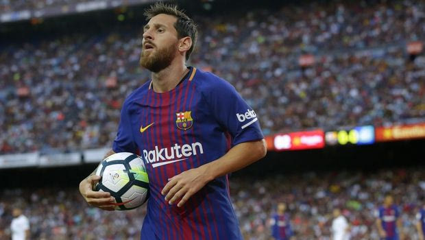 FC Barcelona's Lionel Messi holds a ball during the Joan Gamper trophy friendly soccer match between FC Barcelona and Chapecoense at the Camp Nou stadium in Barcelona, Spain, Monday, Aug. 7, 2017. (AP Photo/Manu Fernandez)