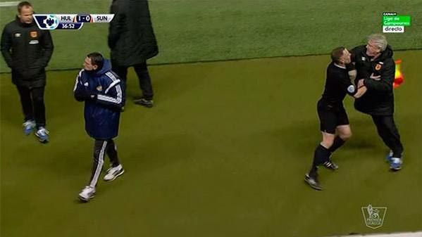 Ευτυχώς ανάμεσά τους βρισκόταν ο τέταρτος διαιτητής που συγκράτησε τον προπονητή της Χαλ και αποσόβησε τα χειρότερα.