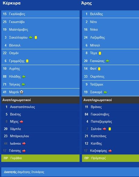 Είναι χαρακτηριστικό πως ο Αρης έχασε την πρώτη του ευκαιρία στο 73ο λεπτό με τον Ούμπιντες. Μετά… το χάος. Ο Γκράθια έπαιξε έξυπνα και κράτησε ανέπαφη την εστία της Κέρκυρας κόντρα σε μία ομάδα που είναι ξεκάθαρο πλέον πως αντιμετωπίζει σοβαρό πρόβλημα. Αγωνιστικό, ψυχολογικό και πλέον βαθμολογικό.