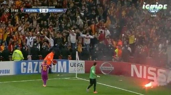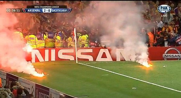 Με βαριά καμπάνα από την UEFA κινδυνεύει η Γαλατασαράι εξαιτίας της κίνησης των οπαδών της να πετάξουν καπνογόνα στον αγωνιστικό χώρο στο παιχνίδι με την Άρσεναλ. Δείτε τις απίστευτες σκηνές που εξελίχθηκαν.