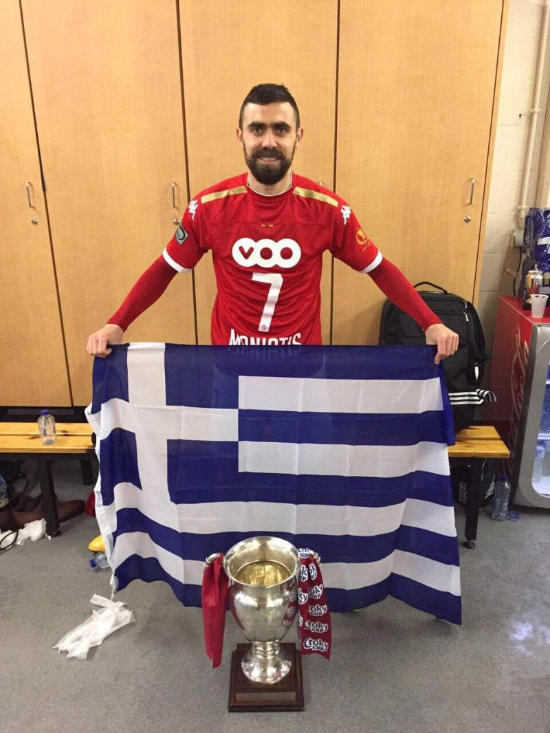 Το βελγικό κύπελλο πανηγυρίζει ο Γιάννης Μανιάτης με τη φανέλα της Σταντάρ Λιέγης.