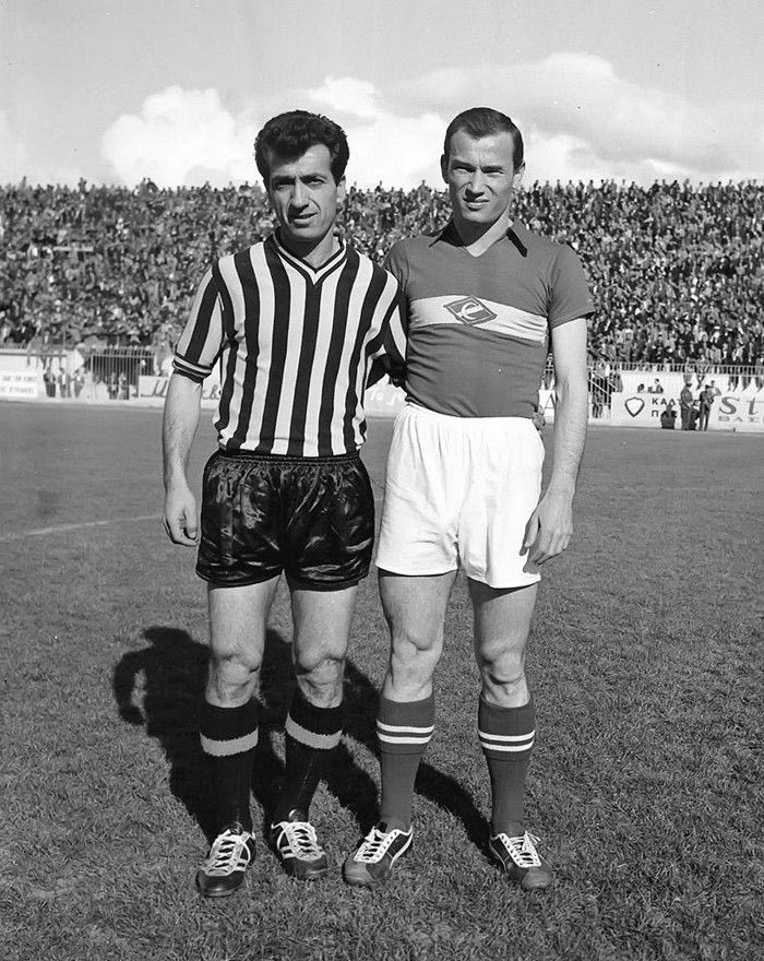 Η Σπαρτάκ Μόσχας επισκέφτηκε τη Νέα Φιλαδέλφεια το σωτήριον έτος 1962 για να δώσει ένα φιλικό απέναντι στην ΑΕΚ. Όπως φαίνεται και στο φωτογραφικό στιγμιότυπο, ο Κώστας Νεστορίδης, ποζάρει με τη ριγέ εμφάνιση με το “V”, χωρίς ωστόσο να υπάρχει το έμβλημα της ΑΕΚ στο σημείο της καρδιάς.