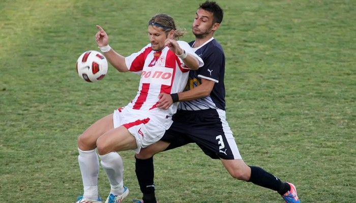 Οι “ερυθρόλευκοι” ήταν καλύτεροι στα πρώτα λεπτά και στο 19ο λεπτό προηγήθηκαν με εκτέλεση φάουλ του Μάριο Μπρέσκα (η μπάλα έσκασε στο έδαφος και ξεγέλασε τον Ηλία Βούρα),