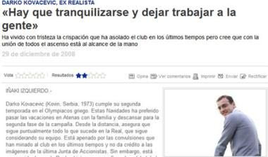 Την επιθυμία του να παραμείνει στον Ολυμπιακό για ακόμη ένα χρόνο εξέφρασε ο Ντάρκο Κοβάσεβιτς με δηλώσεις του στην ισπανική εφημερίδα "Diario Vasco".