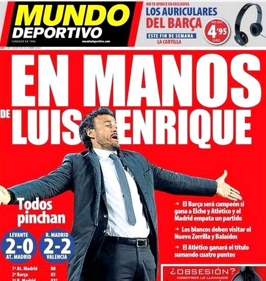Το εξώφυλλο της El mundo deportivo την Δευτέρα: “Στα χέρια του Λουίς Ενρίκε”