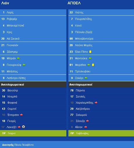 Στο συγκεκριμένο ματς ο ΑΠΟΕΛ δεν είχε πολλές επιλογές. Ναι μεν η Λιόν δεν αποτελεί φόβητρο τύπου Μπαρτσελόνα ή Ρεάλ, όμως οι πρωταθλητές Κύπρου θα έπρεπε να είναι εξαιρετικά προσεκτικοί στην άμυνα για μην εκτεθούν στο “Ζερλάν” και να προστατεύσουν τον Χιώτη.
