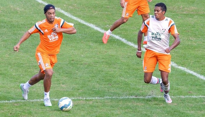 Ο Ροναλντίνιο πραγματοποίησε την πρώτη προπόνησή το με τη φανέλα της Φλουμινένσε και έκλεψε τις εντυπώσεις, πετυχαίνοντας τρία εκπληκτικά γκολ.