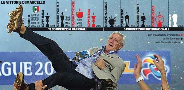 Φυσικά ήταν και ο “πρωτομάστορας” της κατάκτησης του Παγκοσμίου Κυπέλλου του 2006 από την Ιταλία, την οποία οδήγησε μέχρι την κορυφή του kόσμου, ενώ από τη στιγμή που πήγε στην Κίνα… τα σάρωσε όλα! Τρία πρωταθλήματα σε ισάριθμα χρόνια και ακόμη ένα Κύπελλο. Τι άλλο να ζητήσουν οι φίλαθλοι της κινεζικής ομάδας;