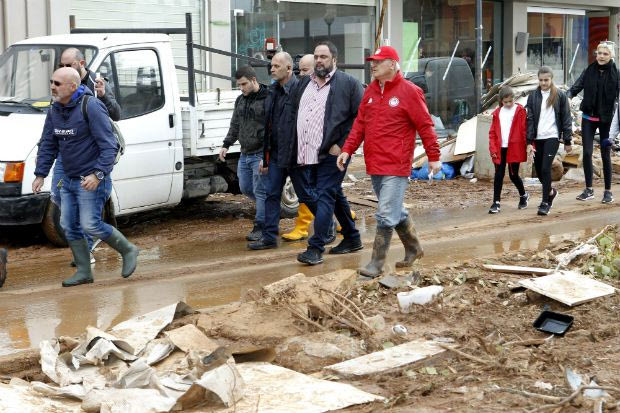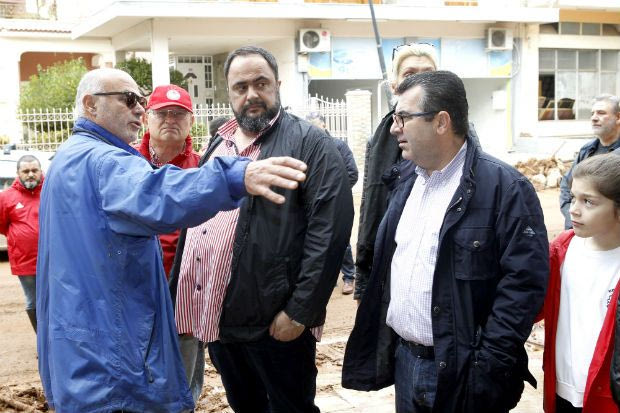 Την Μάνδρα που χτυπήθηκε αλύπητα από τις φονικές πλημμύρες επισκέφθηκε ο Βαγγέλης Μαρινάκης, έχοντας στο πλευρό του και δύο ποδοσφαιριστές του Ολυμπιακού. Οι Νικολάου - Ανδρούτσος συνόδευσαν τον μεγαλομέτοχο της ΠΑΕ. (PHOTOS)