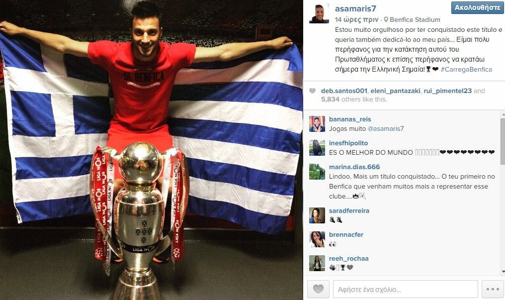 Λίγη ώρα μετά την απονομή του τίτλου, ο μέσος της Μπενφίκα ανέβασε μια φωτογραφία στο instagram ποζάροντας με το τρόπαιο, αλλά φυσικά και την ελληνική σημαία.