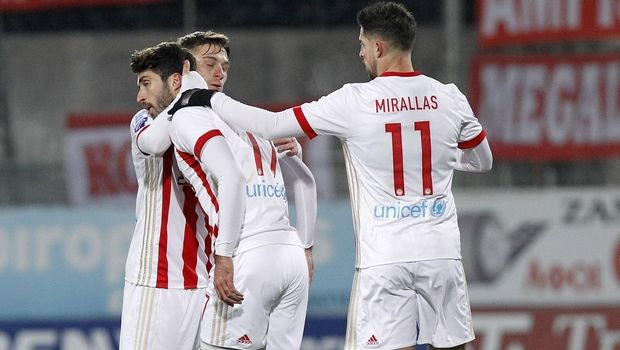 Η 11άδα του Ολυμπιακού: Προτό, Ελαμπντελαουί, Μποτία, Νικολάου, Χατζησαφί, Ζιλέ, Ταχτσίδης, Μάριν, Φορτούνης, Μιραλάς, Ανσαριφάρντ