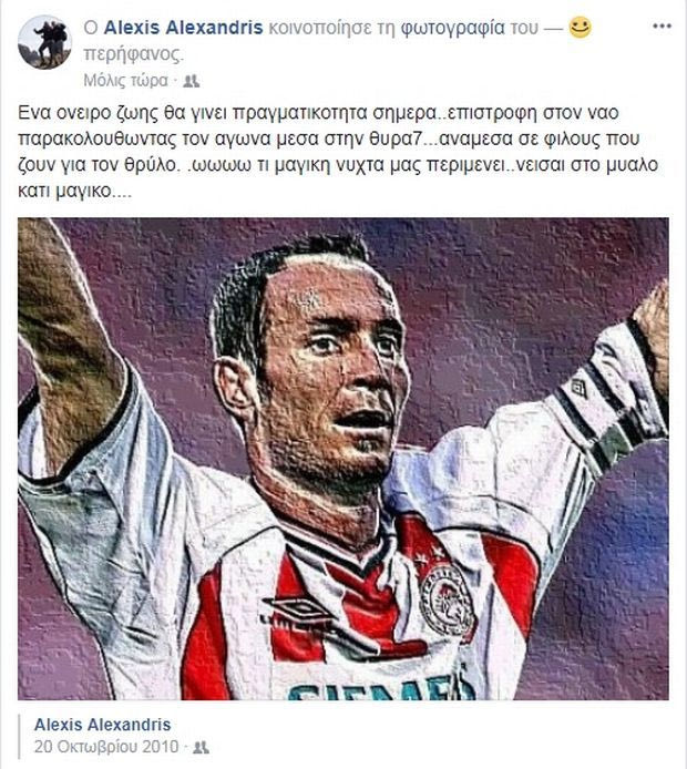 Αυτά ήταν τα λόγια που έγραψε ο γκολτζής Αλεξανδρής που έχει φορέσει τη φανέλα και των δύο ομάδων.