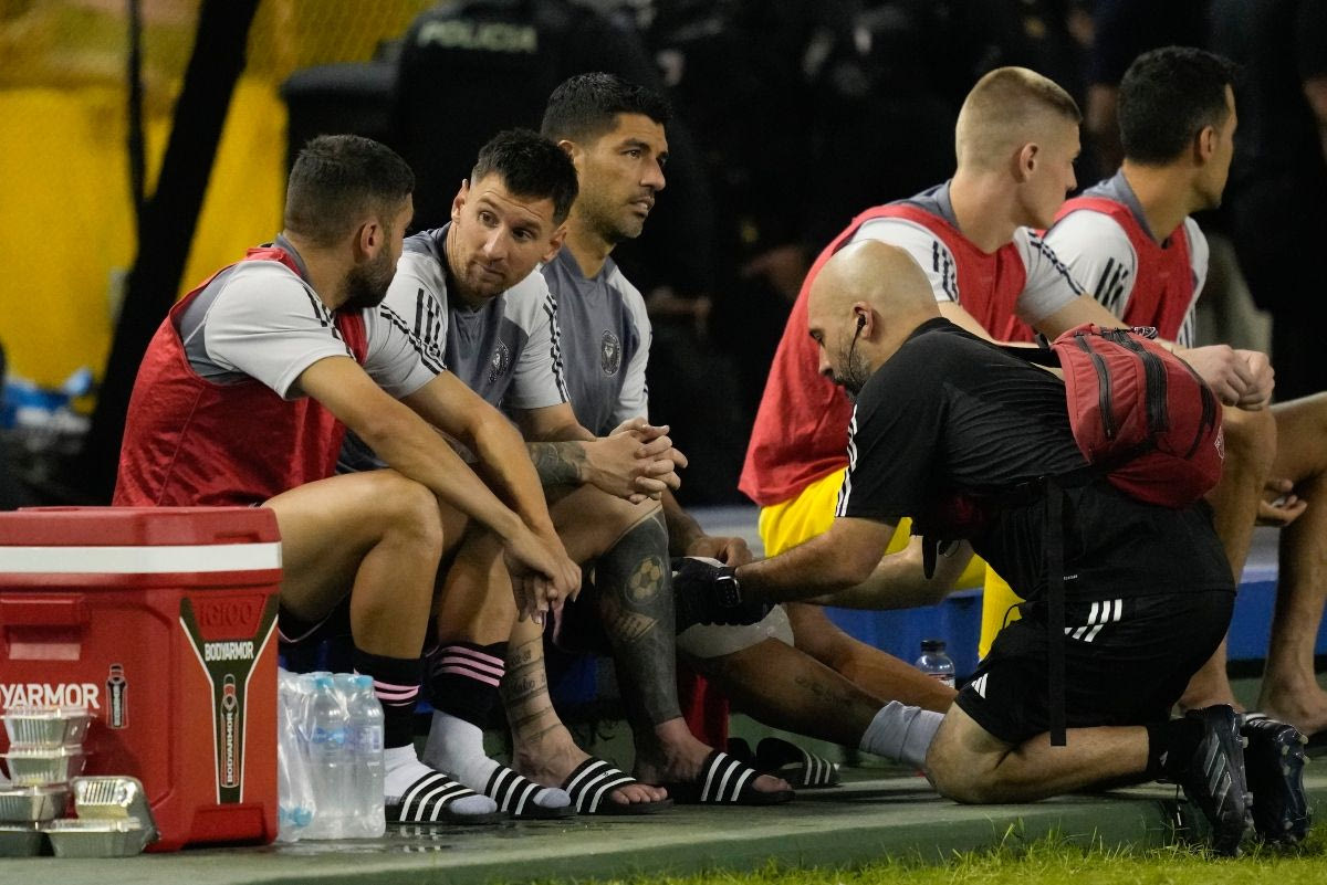 Ο Λιονέλ Μέσι μαζί με τον Λουίς Σουάρες στον πάγκο της Ίντερ Μαϊάμι AP