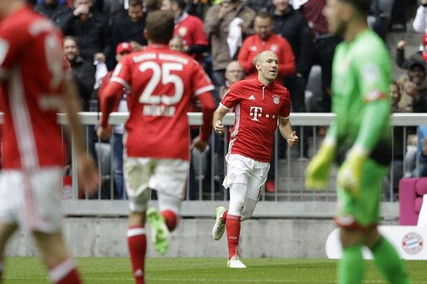 Οι φιλοξενούμενοι προηγήθηκαν μάλιστα δύο φορές στην “Allianz Arena” με σκόρερ τους Κρκιτς και Μπροσίνσκι (πέναλτι), με την Μπάγερν να καταφέρνει να παίρνει μόνο το βαθμό της ισοπαλίας σκοράροντας με τους Άριεν Ρόμπεν και Τιάγκο Αλκάνταρα αλλά να εξακολουθεί να έχει τον πρώτο λόγο για τον πέμπτο συνεχόμενο τίτλο της.